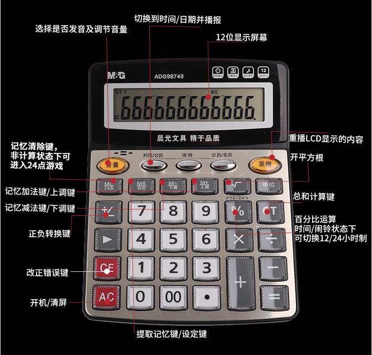 晨光計(jì)算器帶語音辦公用會計(jì)專用商務(wù)計(jì)算機(jī)辦公室大號大按鍵大屏幕女真人發(fā)音財(cái)務(wù)學(xué)生用小號便攜電子記算器