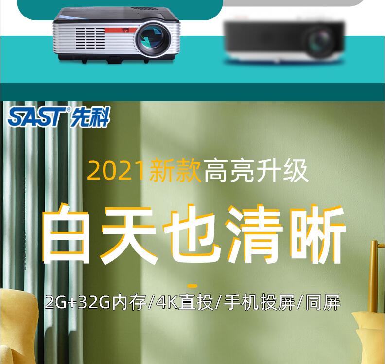 先科投影儀家用臥室小型 便攜4k超高清一體機(jī)可連手機(jī)投影電視高清1080p智能家庭影院辦公會(huì)議培訓(xùn)教學(xué)投影機(jī)